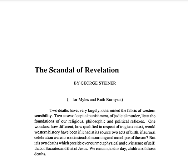 Glad to be revisiting two tremendous essays by the late George Steiner — on Socrates & Jesus (& Nietzsche); & on Plato’s Symposium & the Last Supper — in preparation for a philosophy seminar on the Gospels at Eötvös Loránd University, Budapest.