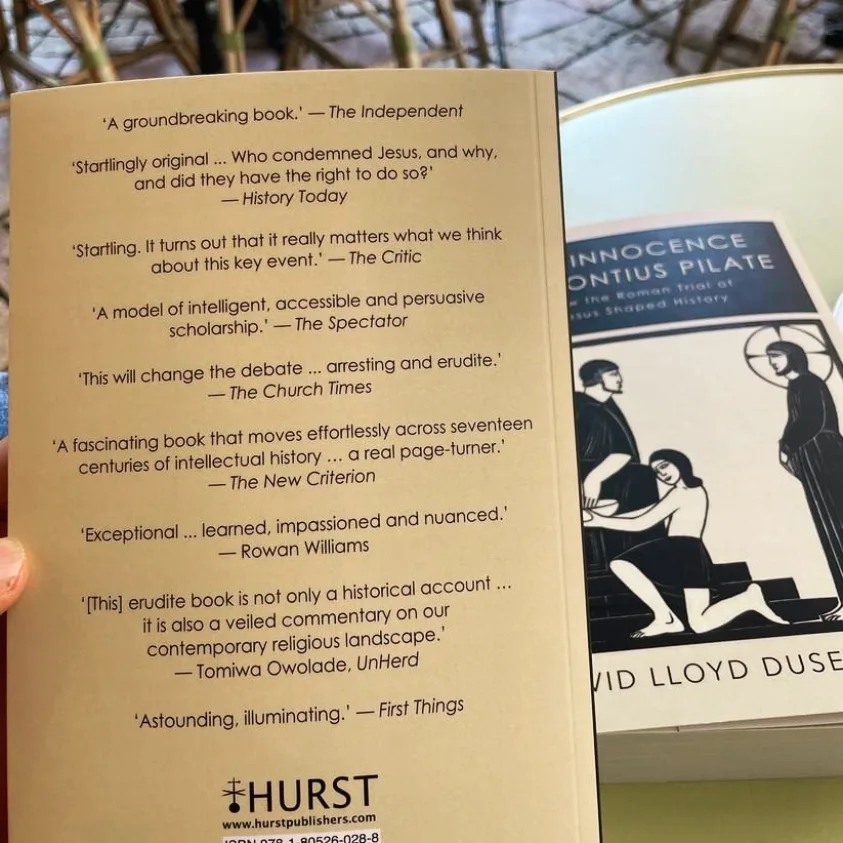Out now in paperback: The Innocence of Pontius Pilate Posted on November 4, 2023 by David Lloyd Dusenbury Hurst has just released The Innocence of Pontius Pilate in an elegant paperback edition. So pleased to see it! Share this: Click to share on X (Opens in new window) X Click to share on Facebook (Opens in new window) Facebook Like Loading... Related